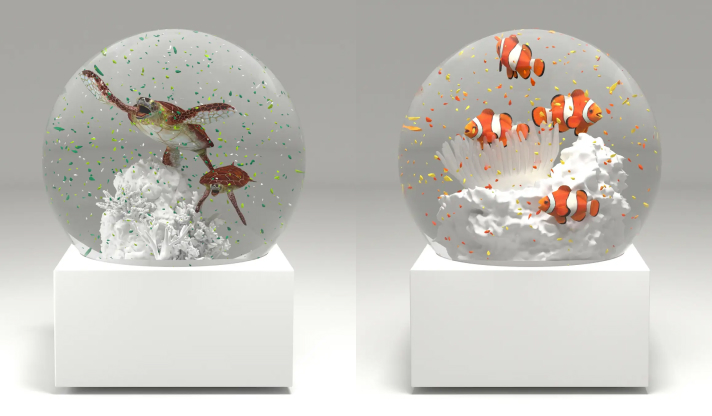 横浜八景島主催「”名画になった”海 展」出展作品。マイクロプラスチックが漂う海の中と、そこで暮らす海の生きものを表現したスノードーム『Microplastic Globe』の制作をサポートしました。